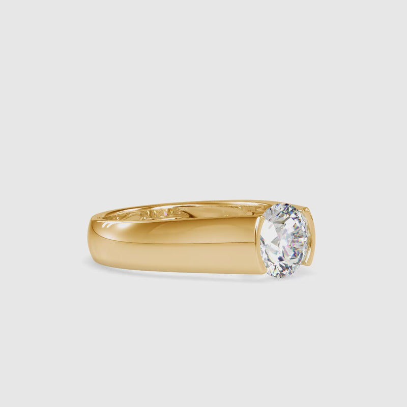 Sleek and contemporary, this 1.19 Ct Round Cut Half Bezel Lab Grown Diamond Gold Ring blends modern design with timeless brilliance. The round cut diamond is partially encased in a smooth half bezel setting, offering a clean and refined look while allowing maximum light to enhance its sparkle.