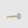 Surrounded by a shimmering halo of lab grown diamonds, the center stone appears larger and more luminous. The halo enhances light reflection while adding depth and dimension to the design. Set on a polished gold band, this ring offers refined beauty along with a smooth and comfortable fit.