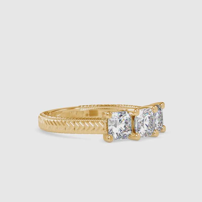 Celebrate past, present, and future with this 2.48 Ct Radiant Cut Three Stone Lab-Grown Diamond Gold Ring, designed to shine with depth and significance. The radiant-cut center diamond delivers exceptional brilliance with crisp facets, while the two side stones enhance sparkle and balance, creating a sophisticated and timeless silhouette. It is a beautiful choice for engagements, anniversaries, or meaningful milestones.